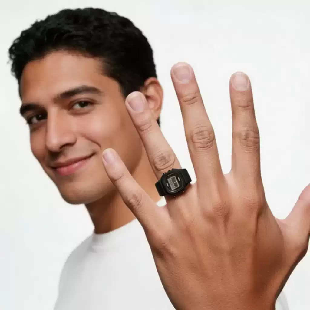El negro ordena el diseño y lo hace todavía más reconocible. En el dedo se integra fácil, sin resultar estridente. Es un guiño claro al modelo clásico, pero en escala mini.