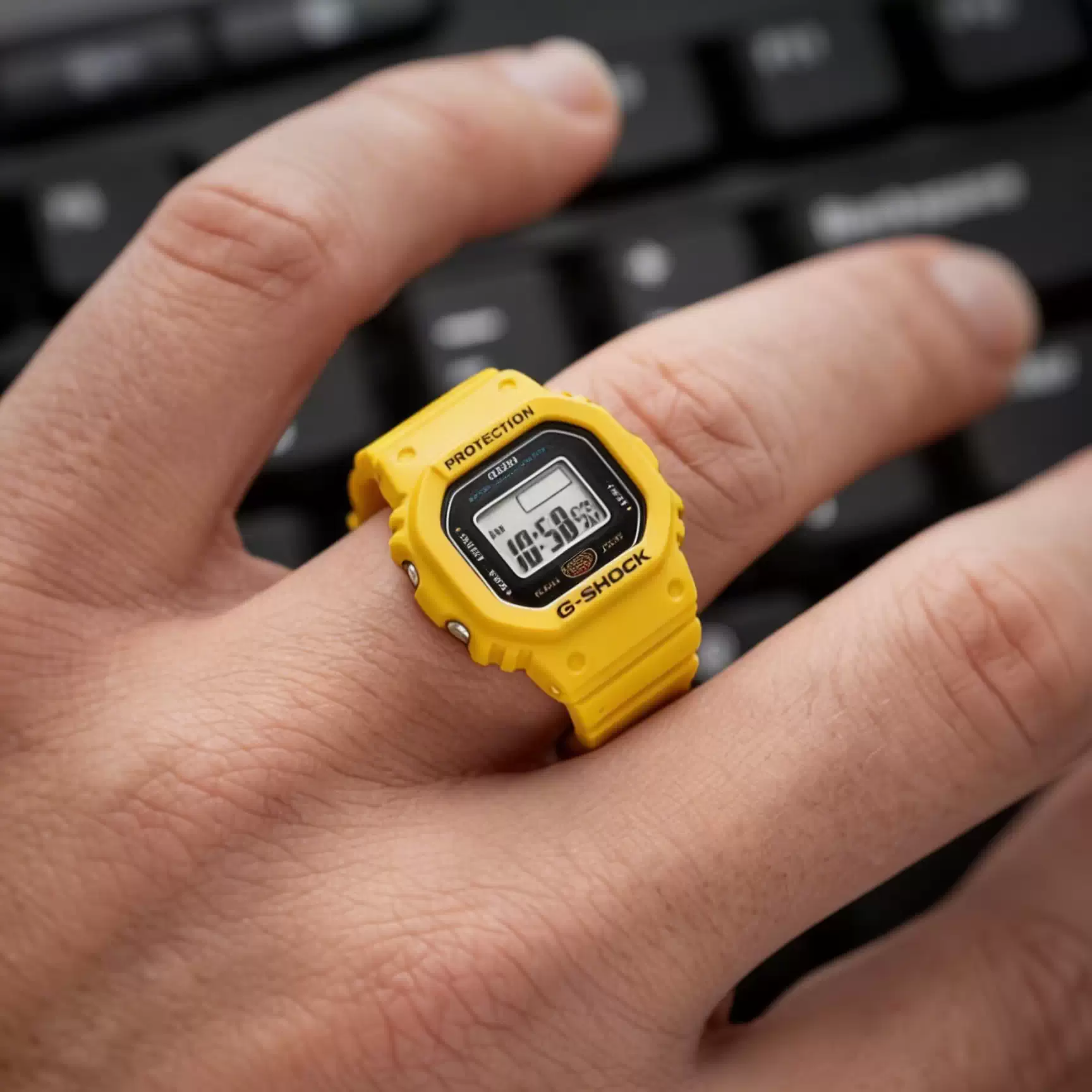 El color resalta la forma icónica del 5600 en versión nano. Se ve gráfico, directo y fiel al espíritu original de G-SHOCK.